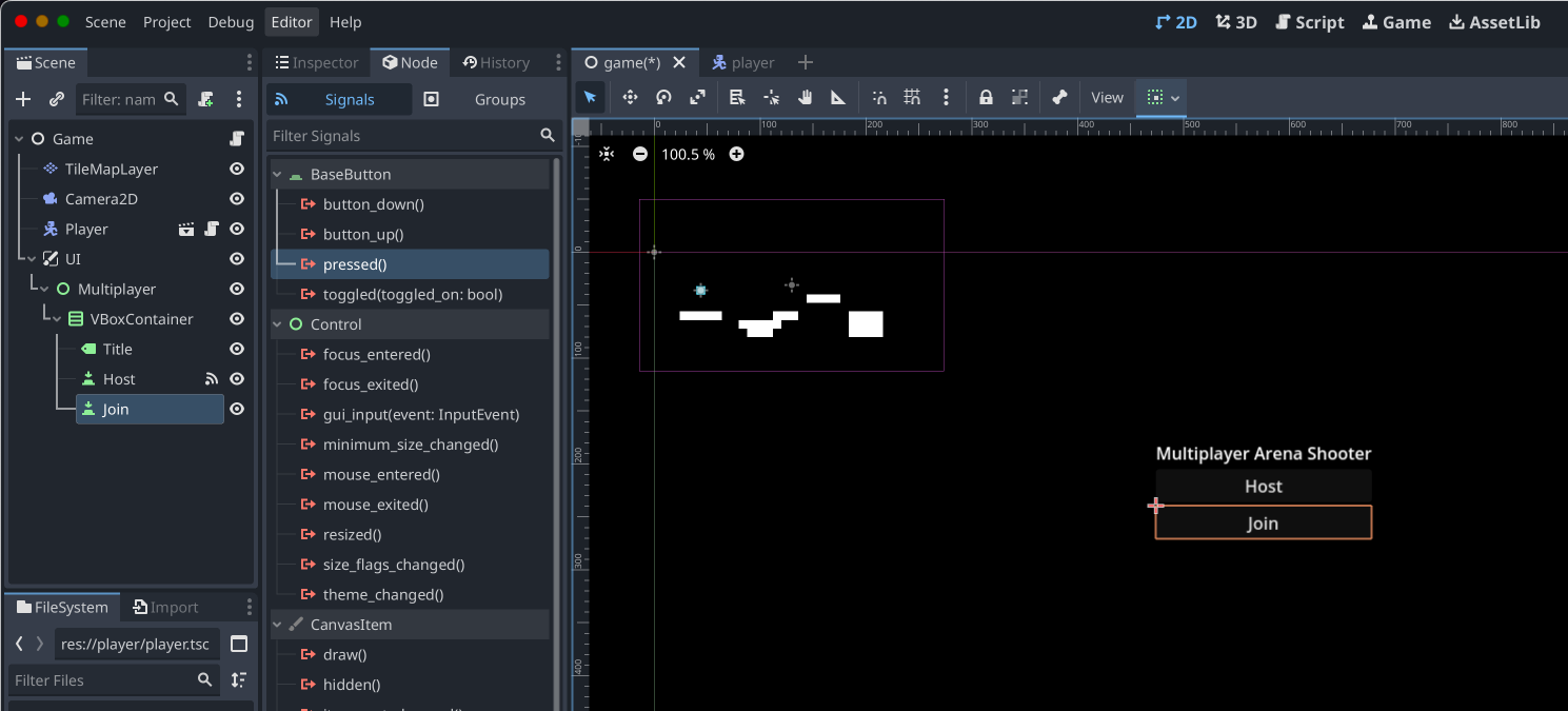 Start by clicking the "Join" Button Node in the Scene tree